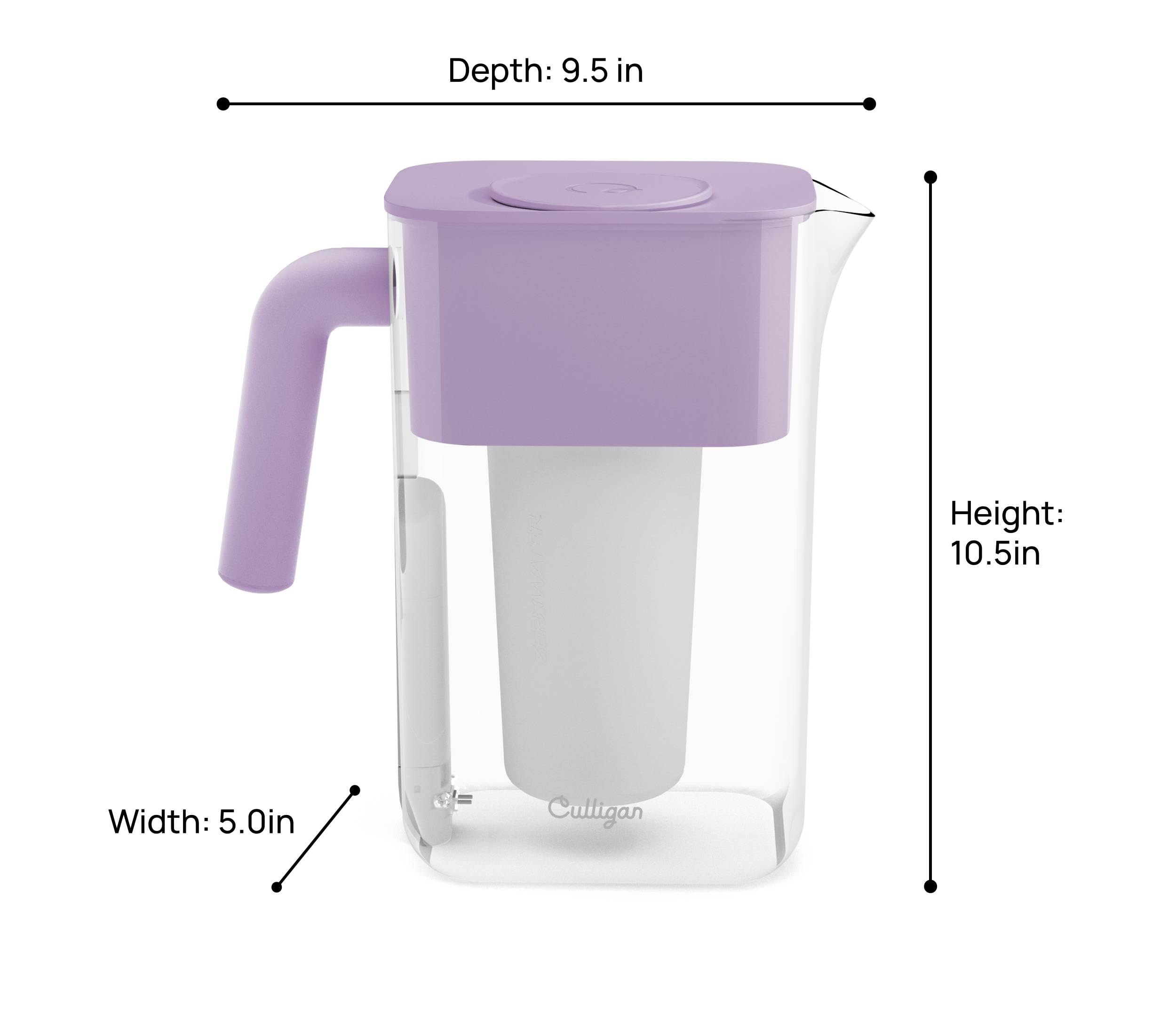 Culligan with ZeroWater Technology 10-Cup Water Filter Pitcher – Includes 5-Stage Advanced Water Filter, IAPMO Certified to Reduce Lead, Total PFAS, Mercury, Fluoride, and Chlorine - Lilac